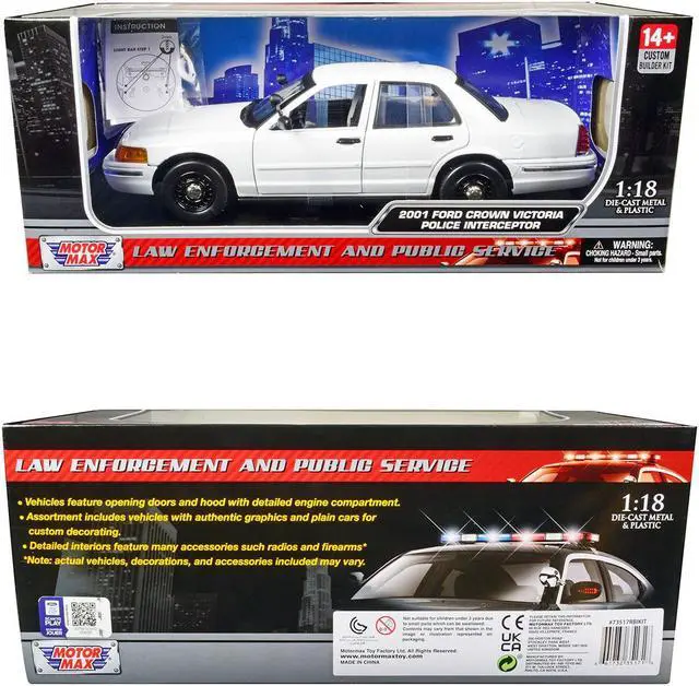 Brand new 1/18 scale diecast car model of 2001 Ford Crown Victoria Police Car Unmarked White "Custom Builder's Kit" Series diecast model car by Motormax.