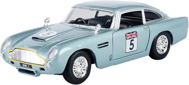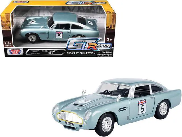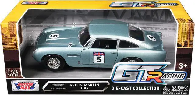 Brand new 1/24 scale diecast car model of Aston Martin DB5 RHD (Right Hand Drive) #5 Light Blue Metallic "GT Racing" Series die cast model car by Motormax.