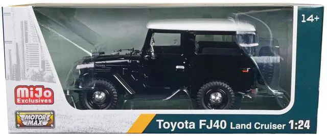 Brand new 1/24 scale diecast car model Toyota FJ40 Land Cruiser Black with White Top die cast model car by Motormax.