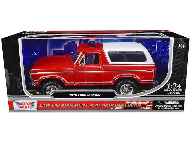 Brand new 1/24 scale diecast car model of 1978 Ford Bronco Fire Department Unmarked Red "Law Enforcement and Public Service" Series die cast model car by Motormax.