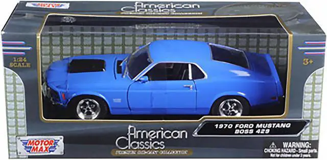 Brand new 1/24 scale diecast car model of 1970 Ford Mustang Boss 429 Blue die cast model car by Motormax.
