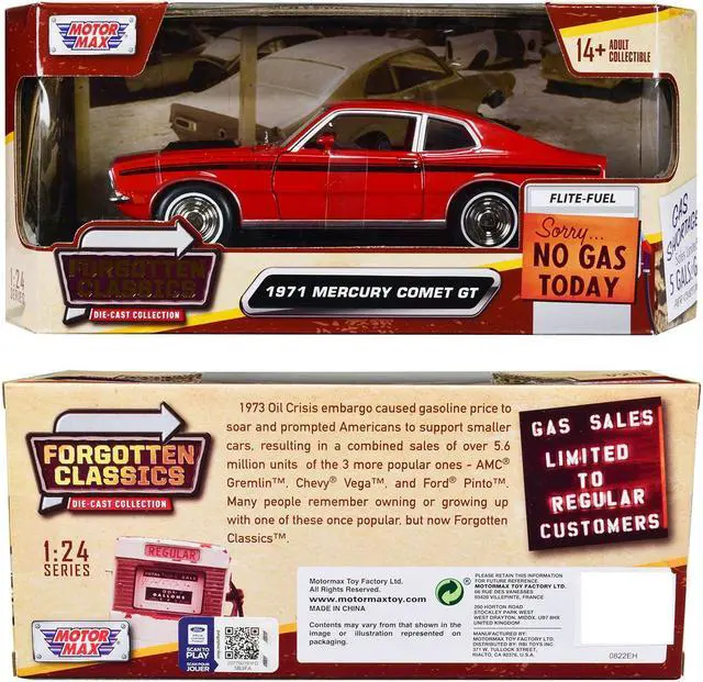 Brand new 1/24 scale diecast car model of 1971 Mercury Comet GT Red with Black Stripes "Forgotten Classics" Series die cast model car by Motormax.