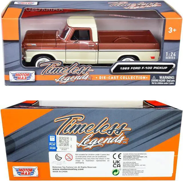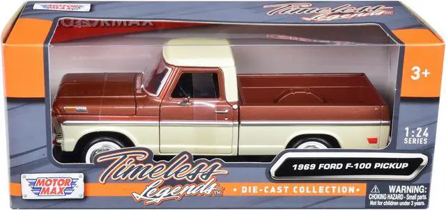 Brand new 1/24 scale diecast car model of 1969 Ford F-100 Pickup Truck Brown Metallic and Cream "Timeless Legends" die cast model car by Motormax.