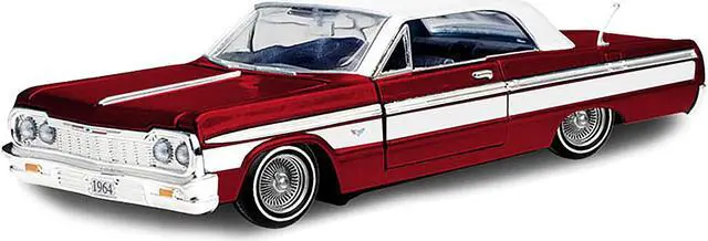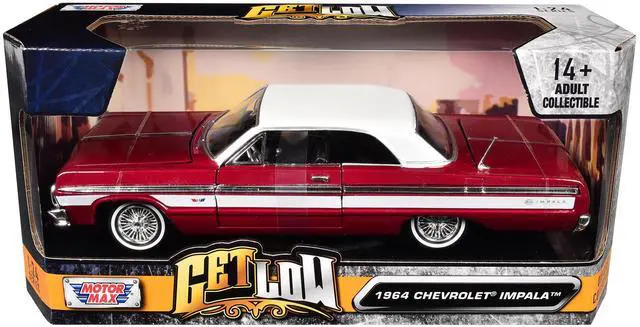Brand new 1/24 scale diecast car model of 1964 Chevrolet Impala Lowrider Hard Top Candy Red Metallic with White Top "Get Low" Series die cast model car by Motormax.