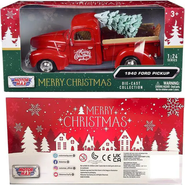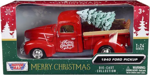 Brand new 1/24 scale die-cast car model of 1940 Ford Pickup Truck Red "Merry Christmas" with Tree Accessory diecast model car by Motormax.