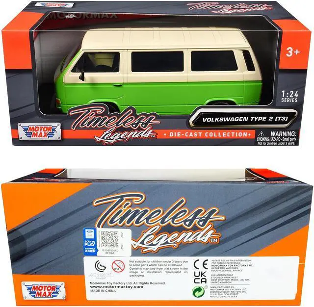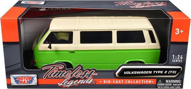 Brand new 1/24 scale diecast car model of Volkswagen Type 2 (T3) Van Green and Beige "Timeless Legends" Series die cast model car by Motormax.