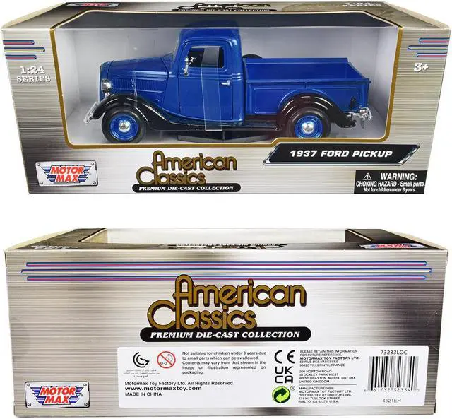 Brand new 1/24 scale diecast car model of 1937 Ford Pickup Truck Blue Metallic and Black "American Classics" die cast model car by Motormax.