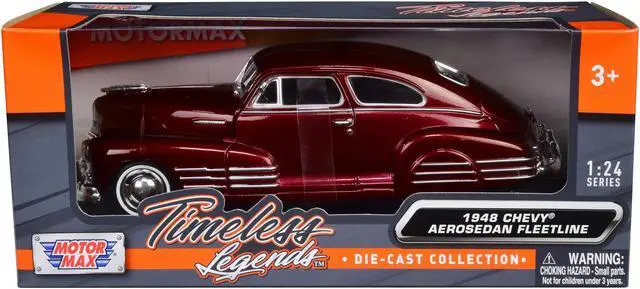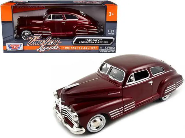 Brand new 1/24 scale diecast car model of 1948 Chevrolet Aerosedan Fleetline Dark Red Metallic die cast model car by Motormax.