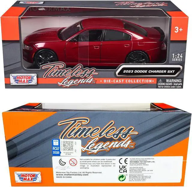 Brand new 1/24 scale diecast model of 2023 Dodge Charger SXT Red Metallic "Timeless Legends" Series die cast car by Motormax.