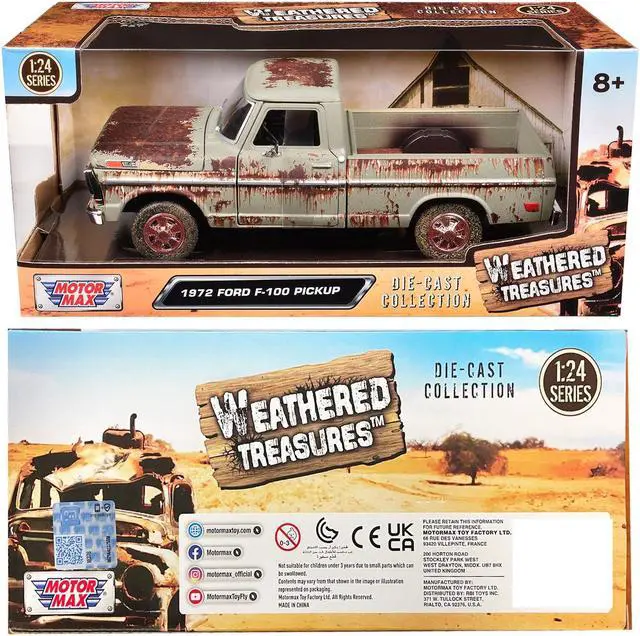 Brand new 1/24 scale diecast car model of 1972 Ford F-100 Pickup Truck Beige (Rusted) "Weathered Treasures" Series die cast model car by Motormax.