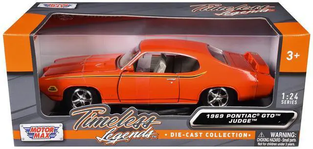 Brand new 1/24 scale diecast car model of 1969 Pontiac GTO Judge Orange with Stripes die cast model car by Motormax.