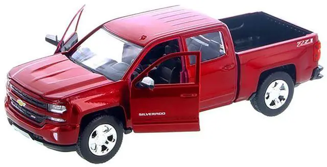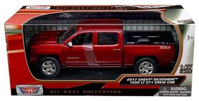 Brand new 1/27 scale diecast car model of 2017 Chevrolet Silverado 1500 LT Z71 Crew Cab Pickup Truck Metallic Red die cast car by Motormax.