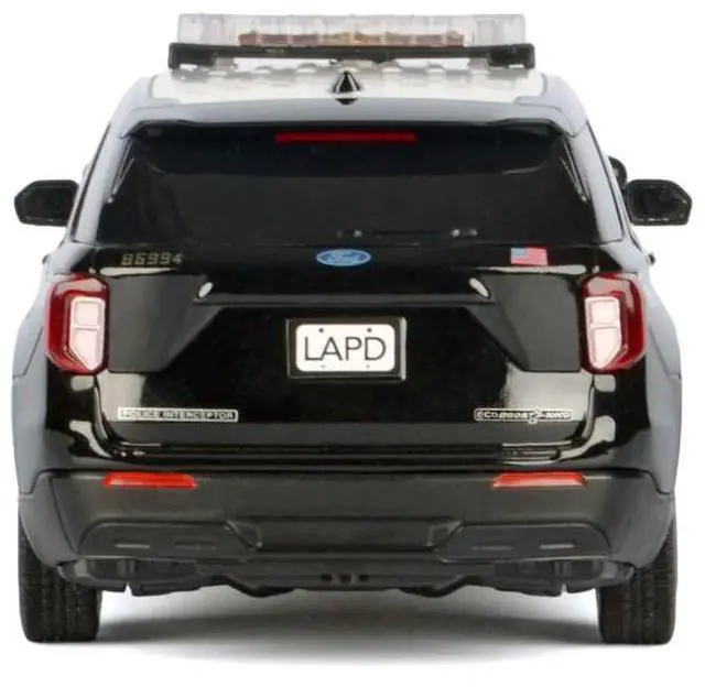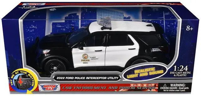 Brand new 1/24 scale diecast car model of 2022 Ford Police Interceptor Utility Black and White "Los Angeles Police Department (LAPD) " with Flashing Light Bar and Front and Rear Lights and Sounds die cast model car by Motormax.