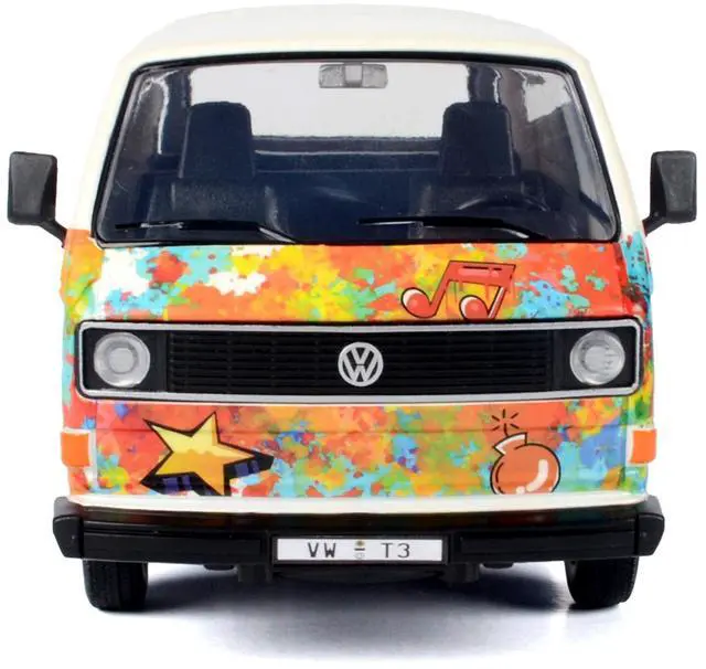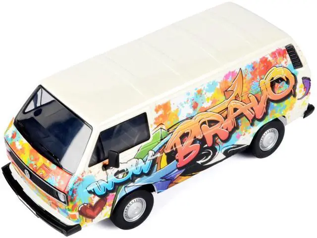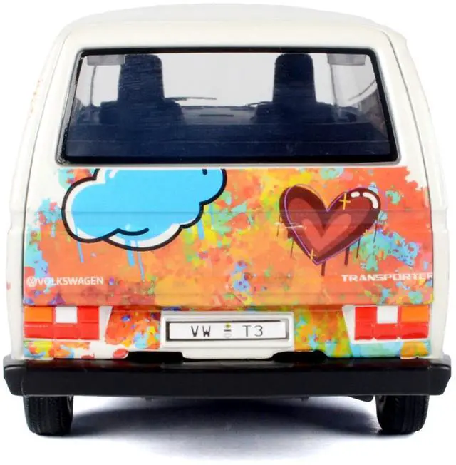 Brand new 1/24 scale diecast car model of Volkswagen Type 2 (T3) Van White Metallic with Graffiti Graphics die cast model car by Motormax.