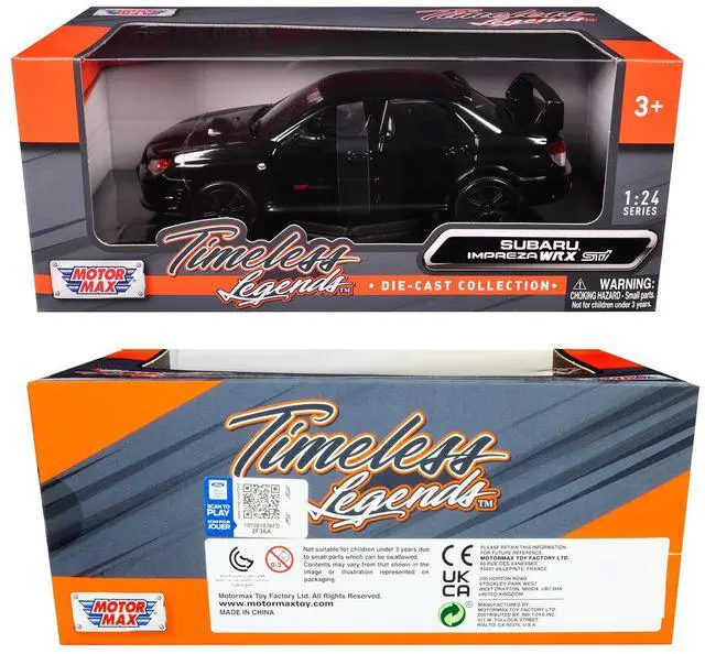 Brand new 1/24 scale diecast car model of Subaru Impreza WRX STi Black die cast model car by Motormax.
