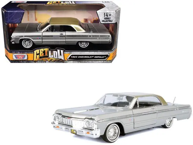 Brand new 1/24 scale diecast car model of 1964 Chevrolet Impala Lowrider Hard Top Silver Metallic with Gold Metallic Top "Get Low" Series die cast model car by Motormax.