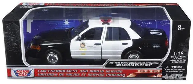 Brand new 1:18 scale diecast model of 2001 Ford Crown Victoria Los Angeles Police Department LAPD Car die cast model by Motormax.