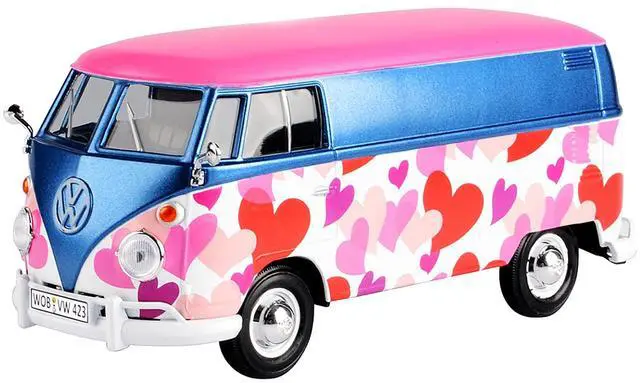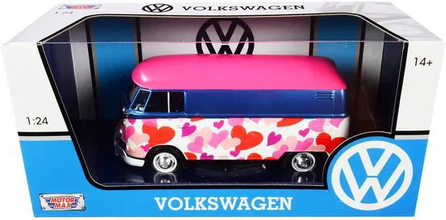Brand new 1/24 scale diecast model of Volkswagen Type 2 (T1) Delivery Van "Love" Pink and Blue Metallic die cast model by Motormax.