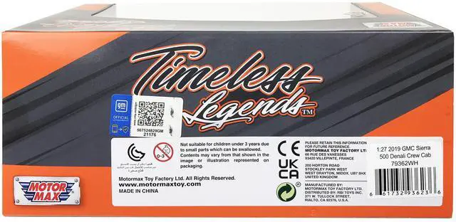 Brand new 1/24-1/27 scale diecast car model of 2019 GMC Sierra 1500 Denali Crew Cab Pickup Truck with Sunroof White "Timeless Legends" Series die cast model car by Motormax.