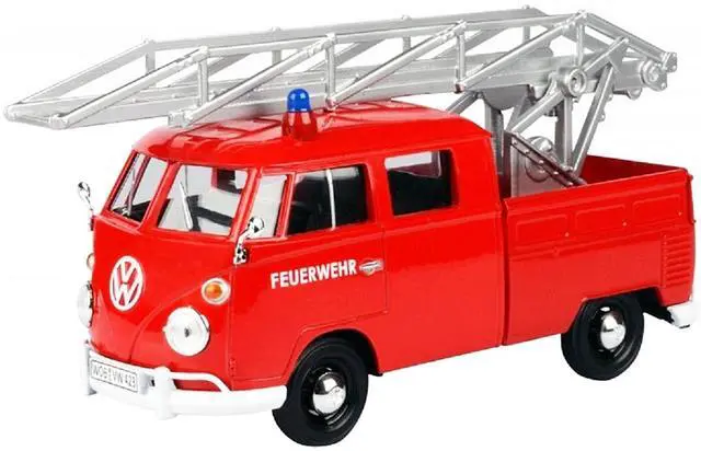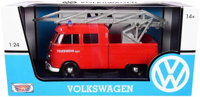 Brand new 1/24 scale diecast car model of Volkswagen Type 2 (T1) Fire Truck with Aerial Ladder "Feuerwehr" Red die cast model car by Motormax.