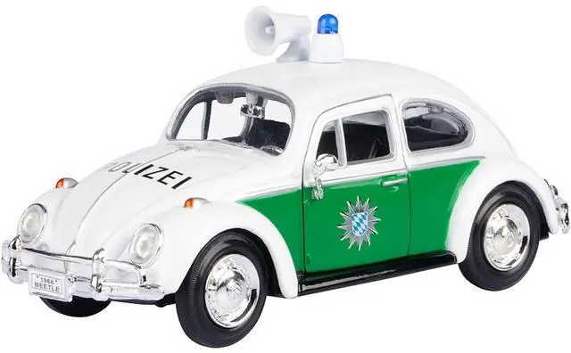 Brand new 1/24 scale diecast car model of 1966 Volkswagen Beetle German Police Car White and Green die cast model car by Motormax.