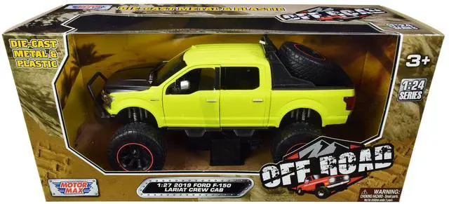 Brand new 1/27 scale diecast car model of 2019 Ford F-150 Lariat Crew Cab Pickup Truck Off Road Bright Green die cast model car by Motormax.