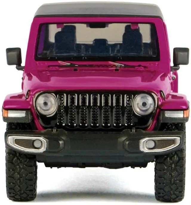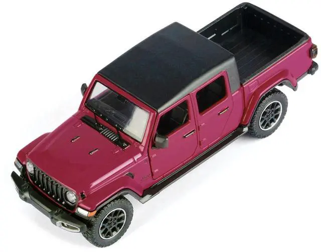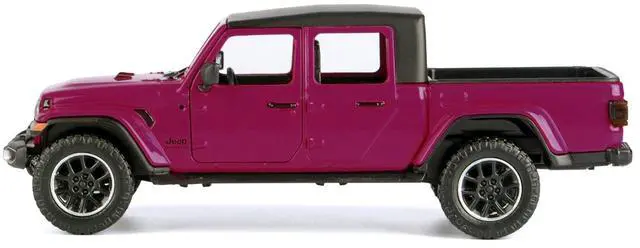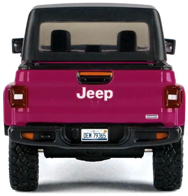 Brand new 1/27 scale die-cast car model of 2021 Jeep Gladiator Overland Pickup Truck Purple with Matt Black Top diecast model car by Motormax.
