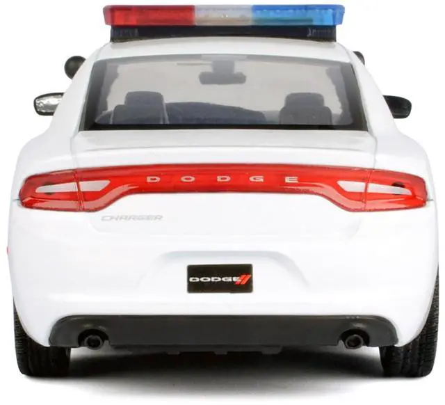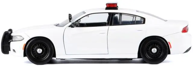 Brand new 1/24 scale die-cast car model of 2023 Dodge Charger Pursuit Police Car Unmarked White with Flashing Light Bar, Front and Rear Lights and 2 Sounds "Builder's Kit" die cast model car by Motormax.