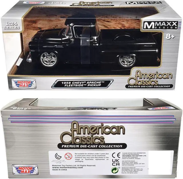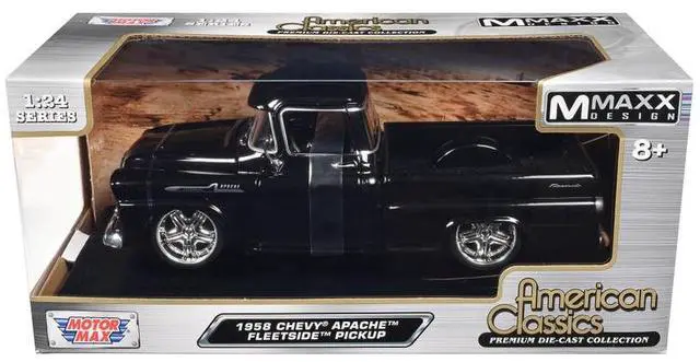 Brand new 1/24 scale diecast car model of 1958 Chevrolet Apache Fleetside Pickup Black "Maxx Design" "American Classics" Series die cast model car by Motormax.
