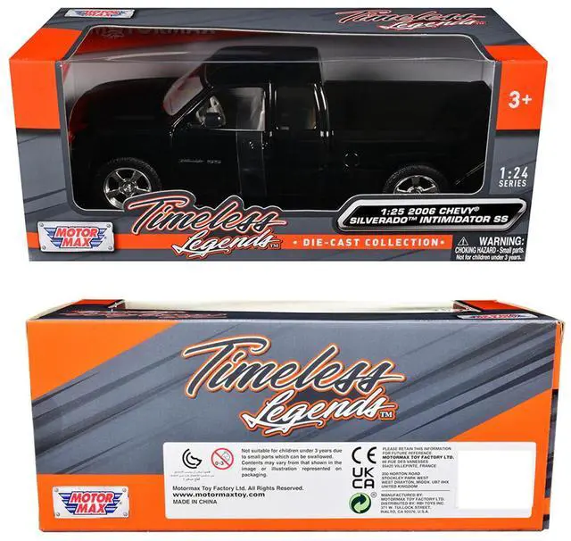 Brand new 1/25 scale diecast model car of 2006 Chevrolet Silverado Intimidator SS Pickup Truck Black "Timeless Legends" Series die cast car model by Motormax.