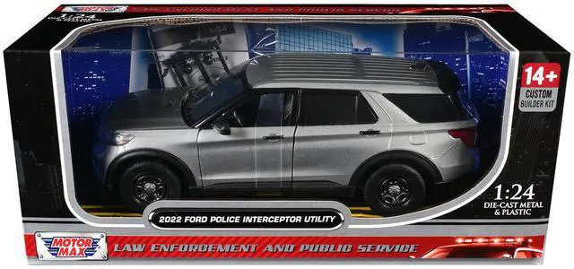 Brand new 1/24 scale diecast car model of 2022 Ford Police Interceptor Utility Unmarked Silver Metallic "Builder's Kit" "Law Enforcement and Public Service" Series die cast model car by Motormax.