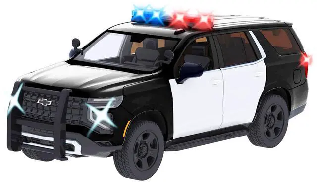 Brand new 1/24 scale diecast car model of 2025 Chevrolet Tahoe PPV Black and White "Builder's Kit" with Flashing Light Bar and Front and Rear Lights and Sounds die cast model car by Motormax.