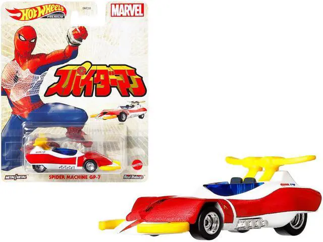 Brand new diecast car model of Spider Machine GP-7 White Metallic and Red Metallic "Marvel" die cast model car by Hot Wheels.