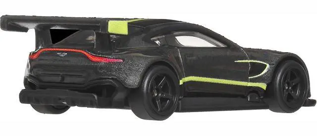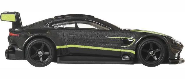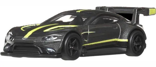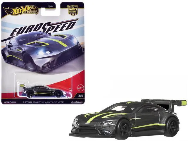 Brand new diecast car model of Aston Martin Vantage GTE Dark Gray Metallic with Lime Green Stripes "Euro Speed" Series die cast model car by Hot Wheels.