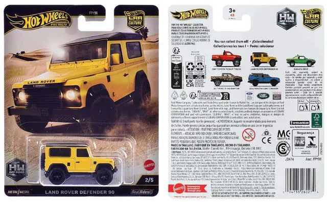 Brand new diecast car model of Land Rover Defender 90 Yellow with Black Top "HW Off Road" Series die cast model car by Hot Wheels.