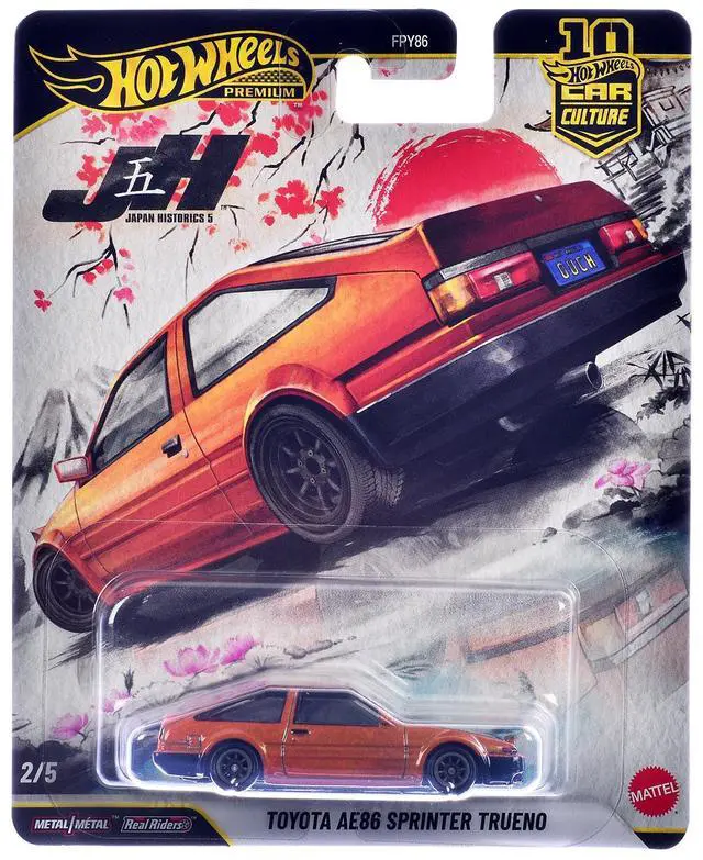 5) Toyota AE86 Sprinter Trueno RHD (Right Hand Drive) Orange Metallic with Carbon Hood.