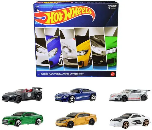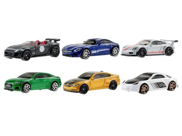 Brand new diecast car models of "European Theme" 6 piece Set die cast model cars by Hot Wheels.