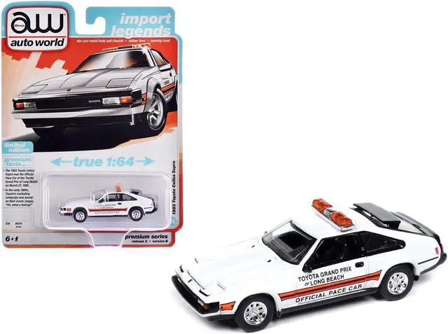 Brand new 1/64 scale diecast car model of 1983 Toyota Celica Supra "Toyota Grand Prix of Long Beach Official Pace Car" White "Import Legends" Series die cast model car by Auto World.
