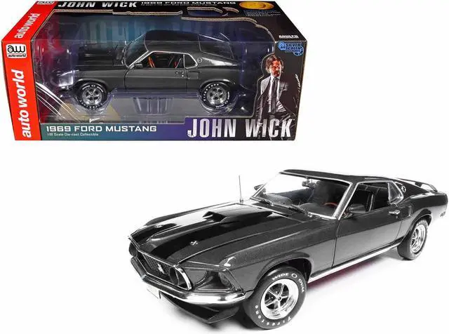 Brand new 1/18 scale diecast car model of 1969 Ford Mustang Dark Gray Metallic with Black Stripes "John Wick" (2014) Movie "Silver Screen Machines" Series die cast model car by Auto World.