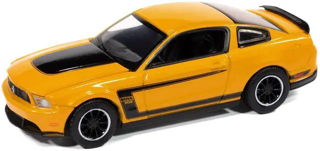 Brand new 1/64 scale diecast car model of 2012 Ford Mustang Boss 302 Yellow Blaze with Black Accents "Modern Muscle" Series die cast model car by Auto World.