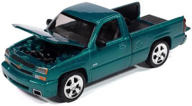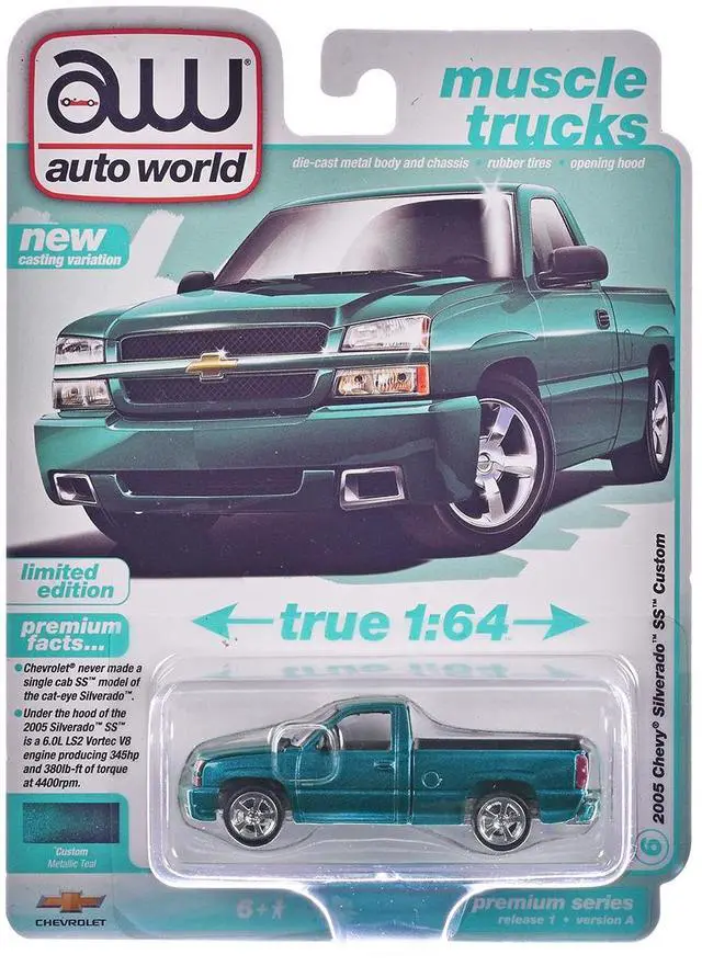 Brand new 1/64 scale diecast car model of 2005 Chevrolet Silverado SS Custom Pickup Truck Teal Metallic "Muscle Trucks" Series die cast model car by Auto World.
