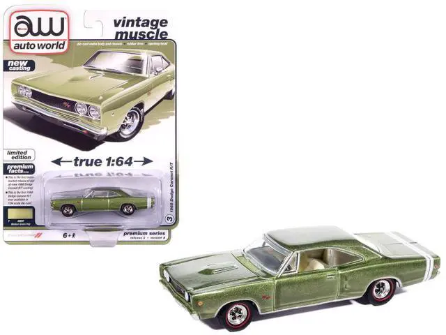 Brand new 1/64 scale diecast car model of 1968 Dodge Coronet R/T Medium Green Metallic with White Interior "Vintage Muscle" Series die cast model car by Auto World.