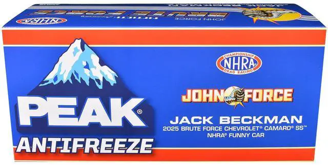 Brand new 1/24 scale diecast model of Chevrolet Camaro SS NHRA Funny Car Jack Beckman "Brute Force Tribute" (2025) "John Force Racing" Limited Edition die cast model by Auto World.