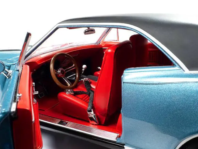 Brand new 1/18 scale diecast car model of 1967 Chevrolet Yenko Camaro YS760 Nantucket Blue Metallic with Black Stripes, Black Vinyl Top, and Red Interior "Muscle Car & Corvette Nationals" (MCACN) "American Muscle" Series die cast model car by Auto World.