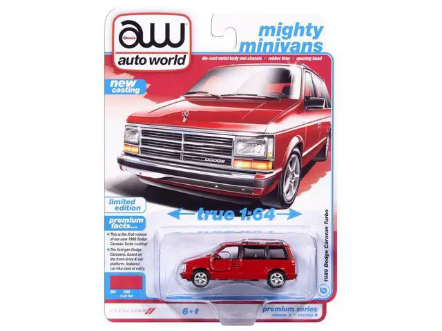 Brand new 1/64 scale diecast car model of 1989 Dodge Caravan Turbo Van Flash Red "Mighty Minivans" Series die cast model car by Auto World.