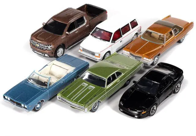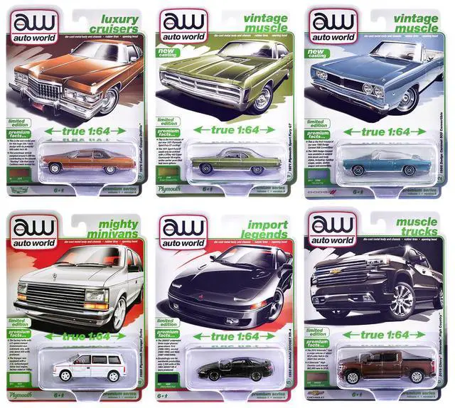 Brand new 1/64 scale diecast car models of Auto World Premium 2026 Release 1 Set A of 6 pieces die cast model cars by Auto World.