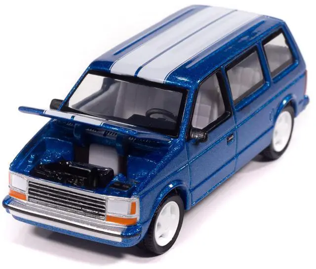 6) 1989 Plymouth Voyager Turbo Van Daytona Blue Metallic with White Stripes and Interior "Mighty Minivans".