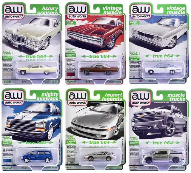 Brand new 1/64 scale diecast car models of Auto World Premium 2026 Release 1 Set B of 6 pieces die cast model cars by Auto World.