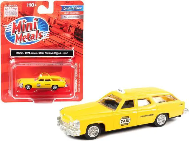Brand new 1/87 (HO) scale car model of 1974 Buick Estate Station Wagon Taxi Yellow model car by Classic Metal Works.