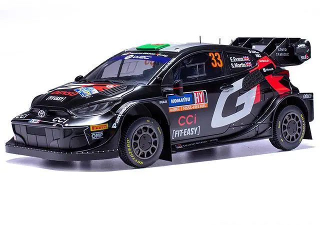 Brand new 1/18 scale diecast car model of Toyota GR Yaris Rally1 Hybrid #33 Elfyn Evans - Scott Martin 2nd Place "Rally Sweden" (2024) die cast model car by IXO Models.